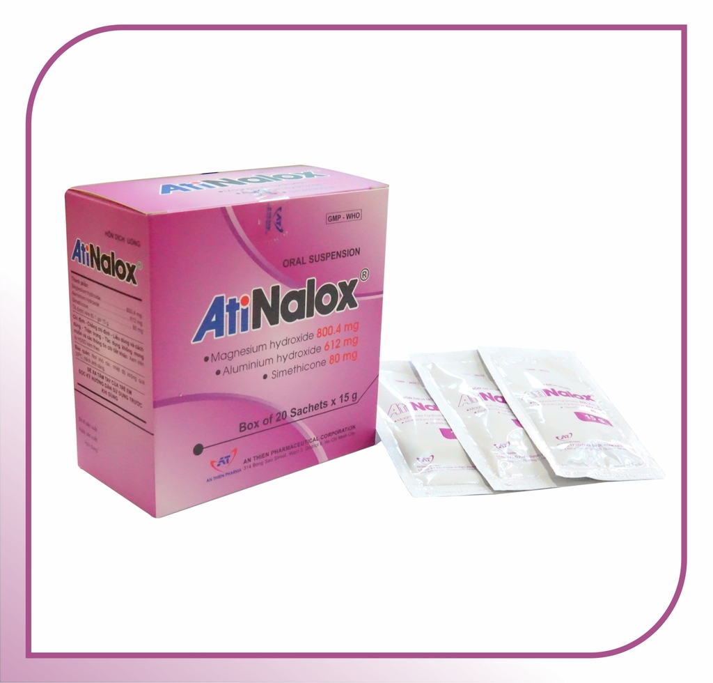 ATINALOX là thuốc kháng acid có thành phần aluminium hydroxide, magnesi hydroxide và simethicone. Aluminium hydroxide, magnesi hydroxide tan trong dịch vị, giải phóng các anion có tác dụng trung hòa acid dạ dày, hoặc làm chất đệm cho acid dạ dày, nhưng không tác động đến sự sản sinh ra dịch dạ dày. Thuốc làm giảm triệu chứng tăng acid dạ dày, giảm độ acid trong thực quản và làm ức chế tác dụng tiêu protid của men pepsin; tác dụng này rất quan trọng ở người bệnh loét dạ dày. Magnesium hydroxide còn có tác dụng nhuận tràng nên làm giảm tác dụng gây táo bón của aluminium hydroxide.